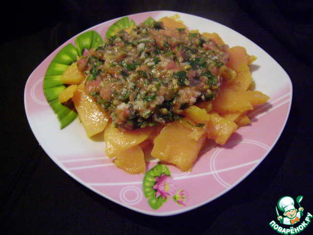 Замечательная тыква. У нас в семье любят чеснок поэтому положила 4 зубка. Получилось очень вкусно.