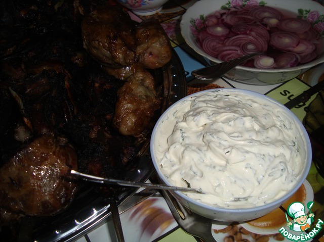 Острый крем-сыр с зеленью от Ольга Ле https://www.povarenok.ru/recipes/show/89810/ Отличный соус к шашлыку, у нас он называется "сюзьма", попробуйте не пожалеете. Добавлять зелень можно любую, чеснок можно и не добавлять.