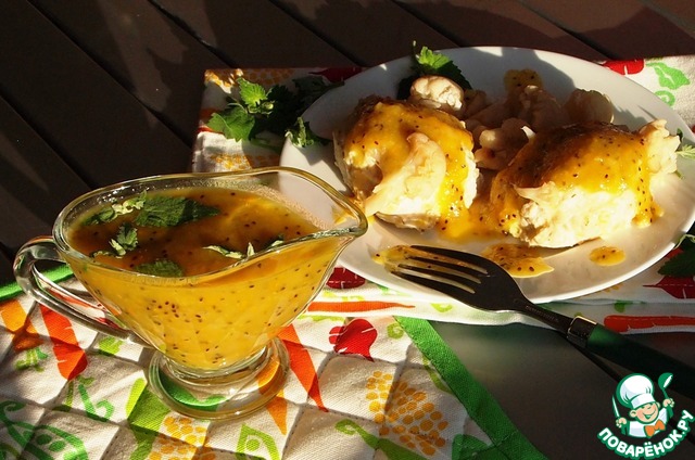7.Фруктовый соус к мясу и птице https://www.povarenok.ru/recipes/show/88764/ от Наташи-Ната1000. Вкусный и очень интересный соус! Вместо клюквы брала апельсин, розмарин пришлось взять сухой, растерла в ступке, вино не добавляла. Лично мне вкус очень понравился, подавала его с паровыми куриными котлетками, но муж не любит сладкие соусы с мясом, поэтому ел его с сырниками, а я и так, и так! За фото извиняюсь, делала на закате, и выправить в редакторе тоже не получилось, как я не старалась