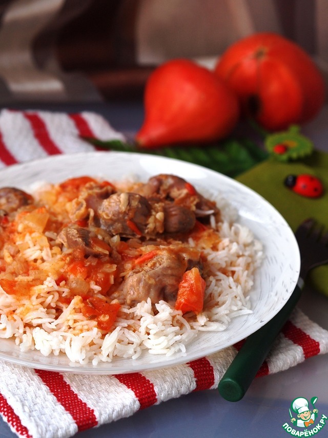 1.Желудки куриные с подливой из томатов https://www.povarenok.ru/recipes/show/74146/ от Арины-Арина А. Нам очень понравилось - сытно, вкусно, просто-в общем замечательное блюдо. Тушить правда, нужно долго, 1,5часа, но зато после этого желудочки становятся нежные и мягкие. Кинзу я не добавляла по причине нашей взаимной нелюбви