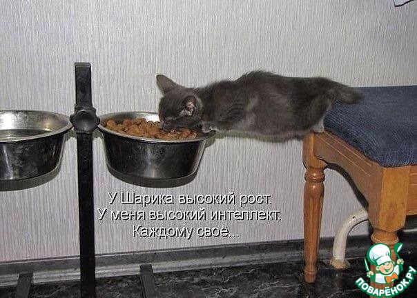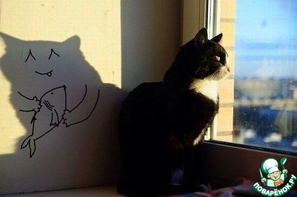 Кот Василий любил есть селёдку под шубой, мясо под диваном, колбасу под столом, котлеты под покрывалом… В общем, был очень стеснителен в еде...