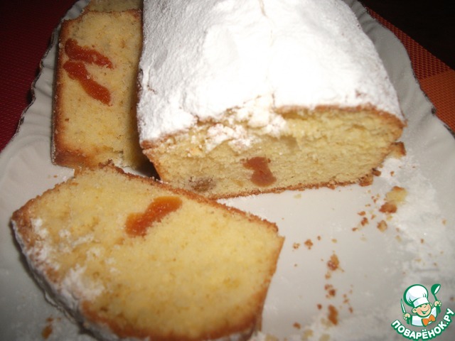 Пирог получился очень-очень вкусный. Вместо вишни были абрикосы.. Правда ягоды оказалось маловато, но вкус все равно был бесподобный!