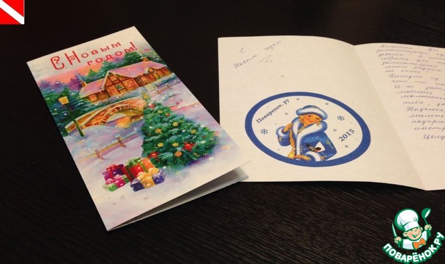 И конечно же, новогодняя открыточка с замечательными словами и небольшое письмецо
