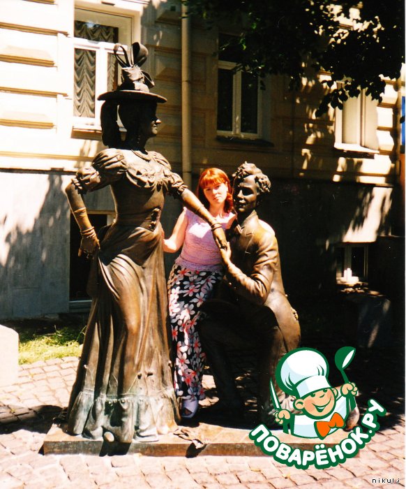 Лет 8 назад я позволила себе составить конкуренцию Проне Прокоповне , обняв товарища "парихмахера"..Этот замечательный памятник по обожаемой мной комедии "За двумя зайцами" находиться у подножья Андреевской церкви (на ступеньках которой разыгрывались последние сцены фильма) в Киеве.Просто потрясающая парочка!!!