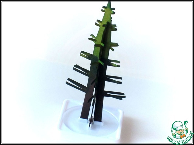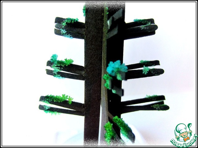 А это через час! Видите, она начала расти))) Стали появляться маленькие кристаллики-иголочки))) Полностью красотой елочки мы сможем насладиться сегодня вечером))) На рост ей нужно шесть часов))) Чудо чудесное))) Ярик и Сережа фоткают ее рост себе на телефоны)))