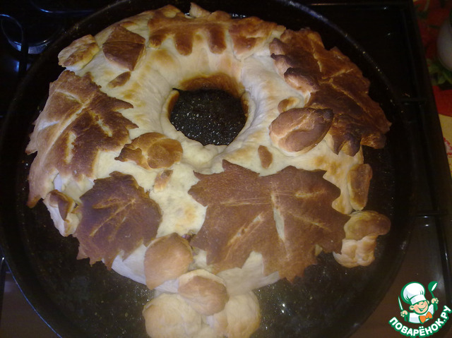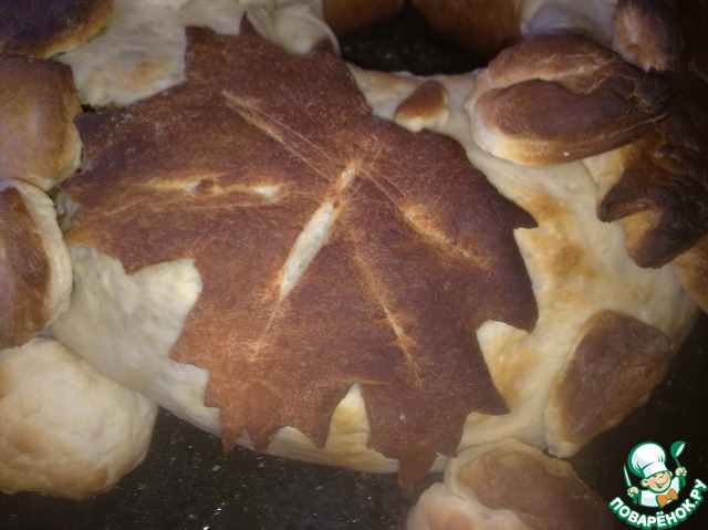 а под листьями нужно было пирог смазать яйцом,чтобы тоже подрумянился