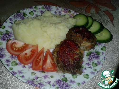 Должно было получится вот-такое чудо, как красивый рулет с начинкой,но увы, у меня всё развалилось...пришлось сделать просто котлетки... Немного расстроилась, но Алхамдулиллах, гостям понравилось.