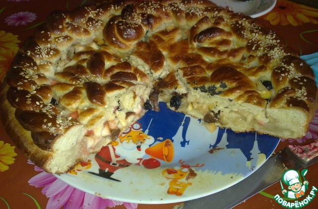 Расстоять, смазать яйцом и выпечь в духовке до готовности.