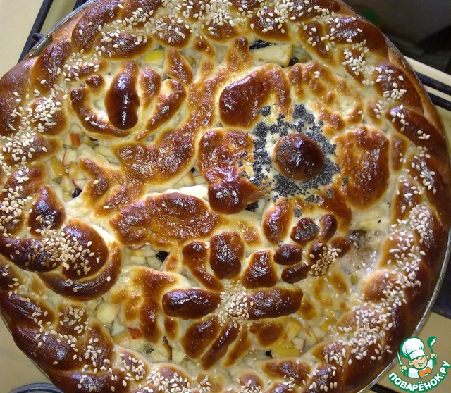 Дрожжевое тесто можно приготовить по любимому своему рецепту из расчета на 500 г муки. Когда оно подойдет, часть раскатать и выложить в форму, сформировать бортики. Начинку перемешать и выложить на тесто. Далее оформить по желанию. Я попыталась сделать мак, ромашку и пчелку.