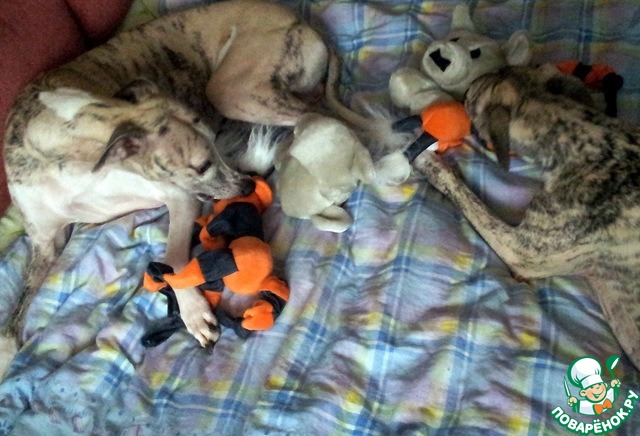 Особенно за игрушки. Джекуне и Реечке они очень понравились. Видешь, как Рей сладко с ними спит. Игрушки, которые ты передала им при нашей встрече в Москве целы. Ничего не поломали и не отгрызли.