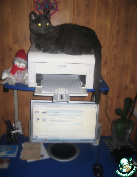 Все коты очень любят найти какое-нибудь теплое местечко, ложбинку, где можно компактно умоститься...вот новое место Томаса...правда принтер слегка маловат по размеру для такой упитанной кошачьей попы...но его это нисколько не смущает))) скорей всего он уверен, что это не попа большая, а принтер маленький)))