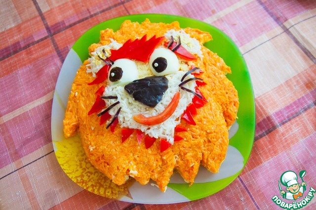 Готовила салат "Львёнок" по рецепту Татьяны Самойловой https://www.povarenok.ru/recipes/show/57393/ Конечно, у меня не такой красавец получился