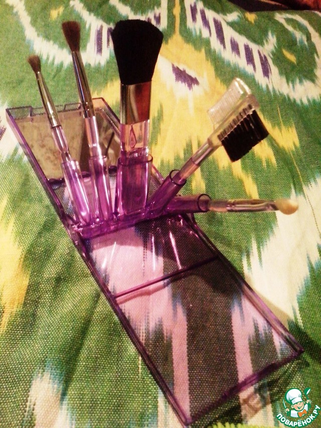 Очень удобный набор, необходимые макияжные инструменты с собой носить. Поселила его на работе, дабы не таскать с собой кисти бесконечно. Макияж-то надо поправлять) А еще я цвет сиреневый обожаю!