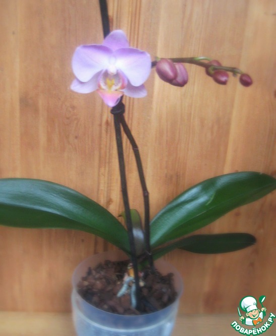 которые оплетали красивенькие цветочки белыми хлопьями! Вооружившись итернетом я нашла этого мелкого пакостника и начала лечение. Пришлось удалить цветоносы (если я правильно называю стебельки, на которых потом распускаются цветочки), листья регулярно обрабатывать специально приготовленным раствором, ну и конечно же пришлось запастись терпением...как оказалось на целый год! Уже к весне моя орхидея начала оживать, выпустила три новых листа, регулярно появлялись новые корешки, но я ждала конечно же цветоносов, а их всё не было... читая интернет, уже начала сомневаться, всё ли правильно я сделала, может не нужно было удалять цветоносы полностью... и наконец ТА-ДАМ!!!