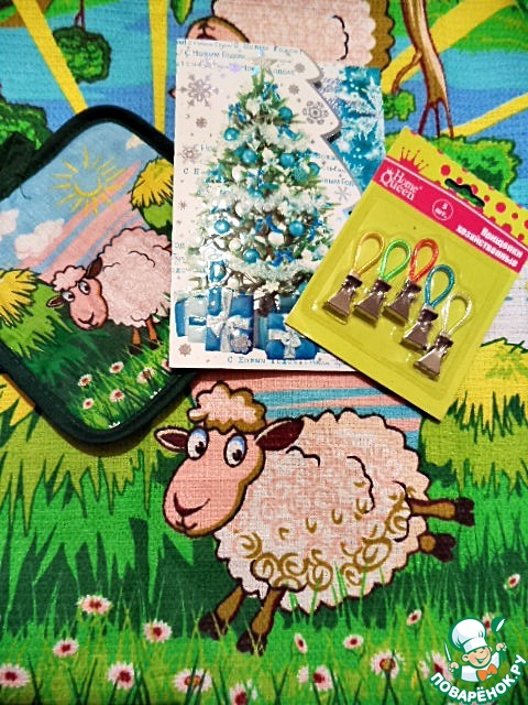А ещё у меня теперь есть чудесное радостное полотенечно и прихватка!!! И совершенно мне необходимые, нужные прищепочки!!!И открытка с такими нежными словами!!!
