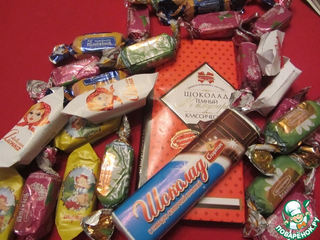 И целая гора шоколада!!!!! Мой любимый чёрный шоколад, батончик и целая рассыпь конфет!!!!