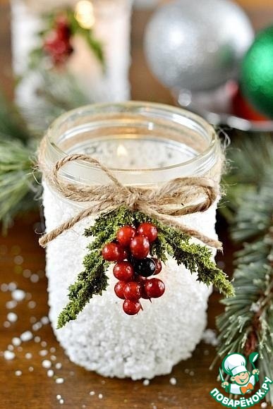 Затем можно украсить по своему желанию, например джутовой веревкой, искусственными веточками и ягодками.
