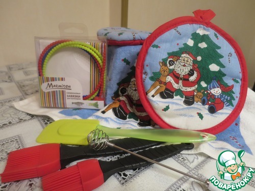 ~ силиконовые кисточки, лопатка, завязки - очень люблю силиконовые кухонные прибамбасы! так что пополнение в силиконовом семействе на кухне очень в тему! [как обладателю помошницы-посудомойки, мне ещё важно качество не только силикона, но и других частей лопатачек, да кисточек, чтоб они не расплавились при мытье... первый душ показал, что мы обязательно подружимся с этими вещичками]