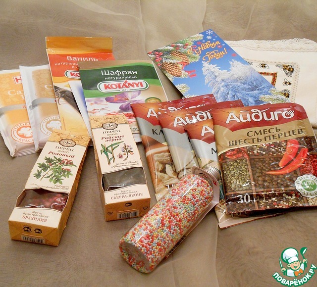 Россыпь чудесных приправ и специй. Сын сразу попытался стащить кондитерскую посыпку и посыпать ею весь свой ужин, включая салат и мясо.