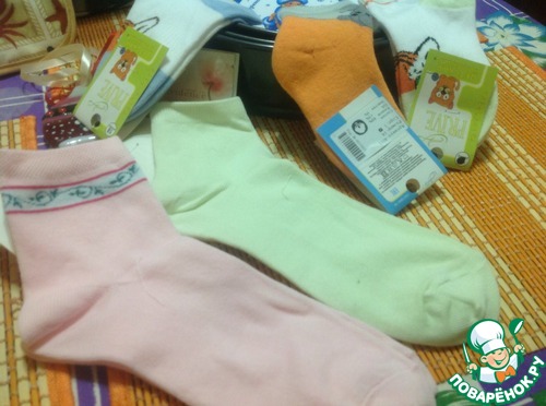 Очень красивые носочки для меня и сыночка!!! Мои носочки очень приятного цвета, розовые и салатовые. Ванечке тоже понравились носочки!!!
