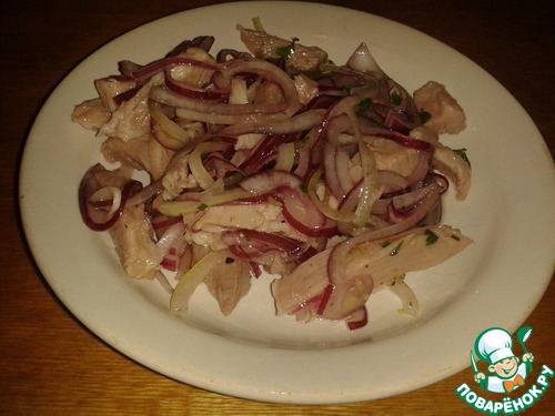Нежнейшее ароматное мясо с маринованным хрустящим лучком. Беспроигрышное сочетание. Однозначно буду делать на новогодний стол.