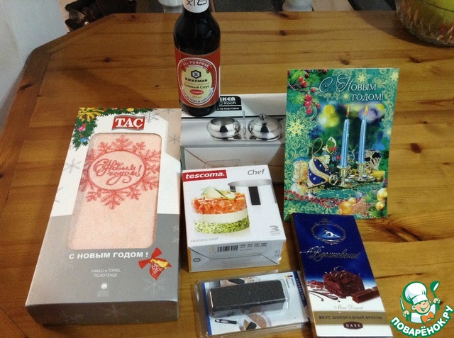 И о чудо, соевый соус сладкий. Я в комментарии к рецепту писала, что хотела бы приготовить, но у нас в продаже не видела сладкий соус, а фирма Киккоман у нас не продается. Ирочка настолько внимательная, что запомнила и прислала мне этот соус. Теперь я смогу на новогодний стол приготовить понравившееся мне блюдо. И конечно же красивущая открытка с замечательными , душевными пожеланиями, а внутри письмо, которое я читала с большим удовольствием. А помогала собирать посылочку мама Ирочки Тамара Анатольевна ( Тамуся) за что ей огромное спасибо!