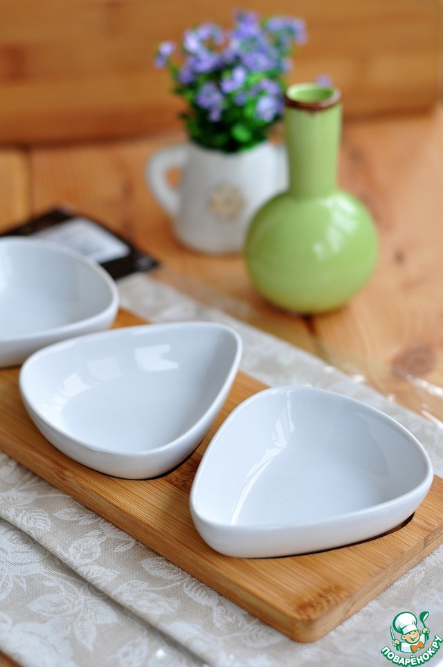 потрясающие соусницы-салатницы на деревянной подставке и льняные салфетки!