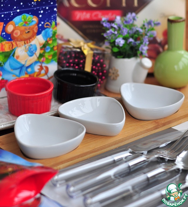 потрясающие соусницы-салатницы на деревянной подставке и льняные салфетки!