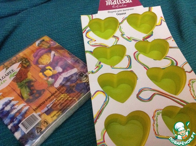 Формочки в виде сердечек (такая прелесть), новогодние салфетки.