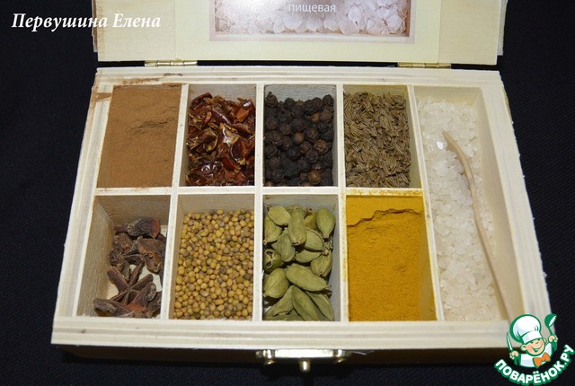 Коробочка с маленькими отделениями с многочисленными специями и приправами!