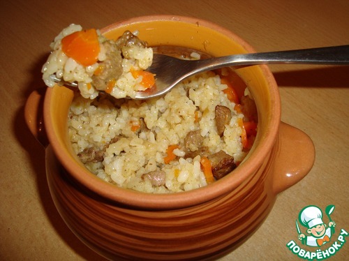 Гречка с куриными сердечками в горшочках https://www.povarenok.ru/recipes/show/95975/ от Светланочки "Samanta_Jones". Получилась обалденно рассыпчатая, "пушистая" гречка. Спасибо Светлана огромное!!!
