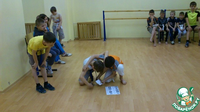 например, ты выиграл супреприз -кругосветное путешествие гусиным шагом вокруг зала. или тебе нужно построить мост через реку(встать на мостик)