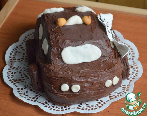 Сначала я планировала покрывать торт мастикой. Замучила Светочку (avani) и Иришку (Ирушенька) своими вопросами. Раньше я никогда не работала с мастикой, и даже не представляла как и что с ней делать. Ну что же, прочитав кучу статей, и насмотревшись видео как сделать машинку, взялась за работу. [cut] Приготовила мастику. Испекла тортик, сформировала машину, приготовила ганаш, покрыла торт. Думала уже покрывать торт мастикой, как свекровь говорит: "Зачем тебе мучиться, пускай так будет! " На дворе, конечно, была уже ночь, целый день готовили угощение для праздника, устала невероятно. В общем раскатала я мастику, дала ребенку кусочки, и он с удовольствием, вместе с бабушкой украшал машину. Вот и наши труды
