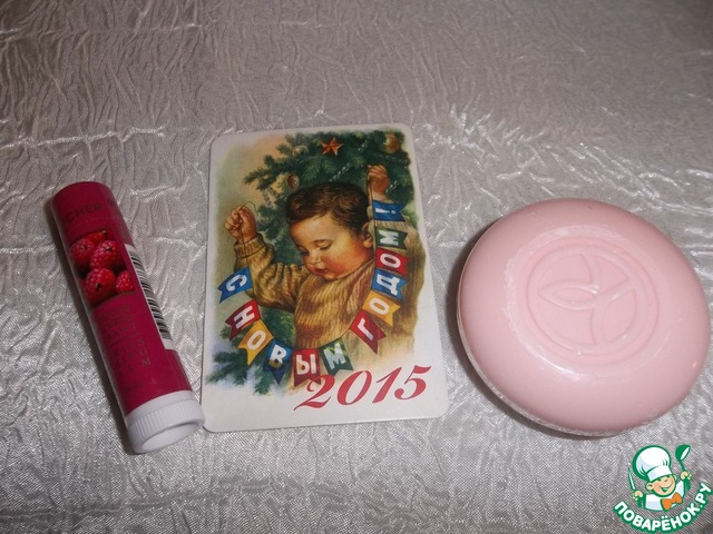Это бальзам для губ,ягодный,ммммммммм,вкусный прямо!!!!! Очень миленький календарик и ароматное мыло от Ив Роше!!!! Запах просто обалденный и остается на руках ,как духи.
