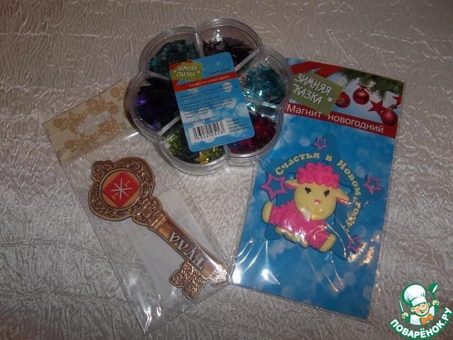 Это ключик-магнитик с надписью Тула!!!!! Магнитик новогодний и конфети новогоднее,ну очень красивое!!!