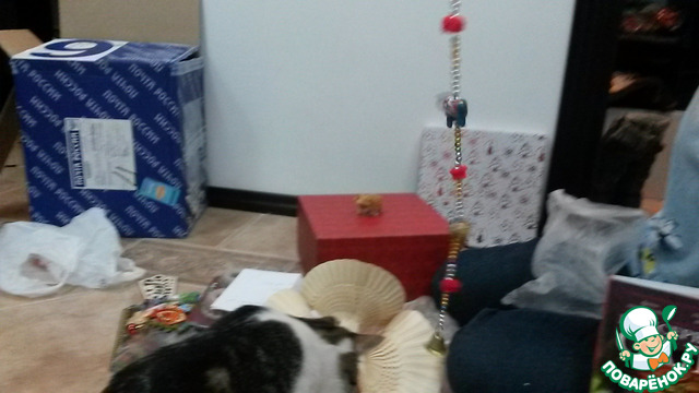 уффф, я дома. и вместе со мной дома волшебный ларец. его габариты и цвет пробуждают в моих котах желание поиграть в ифритов. что они с успехом и проделывают, всячески затрудняя мне доступ к заветной посылочке. но, золушка, просыпающаяся в каждой из нас перед любым крупным праздником, а новый год - несомненно крупнейший из них, - уже разбудила все свои 3 головы и 12 рук - упсс, это из другой сказки - так вот, золушка справилась с джиннами в кошачьем обличии и вскрыла мечом-кладенцом волшебный ларец.