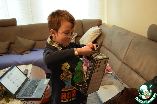 Паша не стал долго ждать и вскрыл свой подарок сразу - чего тянуть?