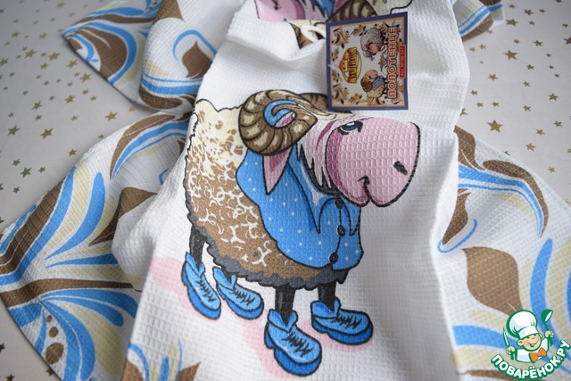 Милая, обворожительная овечка на тонком кухонном полотенчике!