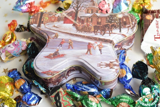 Шкатулка с вкусной россыпью конфет! Ох, и отвела я душу! А конфеты "Маска" вернули меня в школьные годы - мои любимые конфеты!