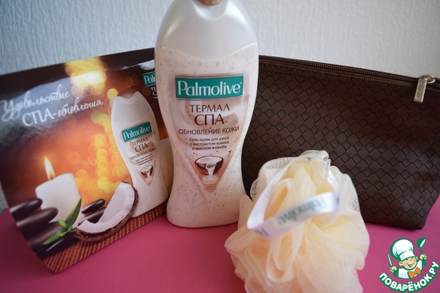 Набор для меня любимой и красивой! Сумочка с гелем для душа и губкой! А главное мои любимые сочетания и запахи - кокос и жожоба!