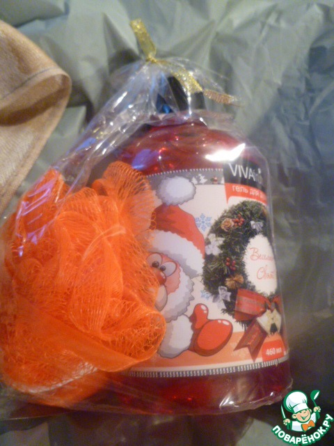 Гель для душа с мочалкой, которую Лизка естественно забрала себе...