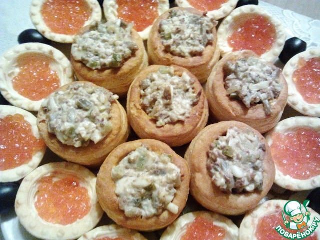 В качестве закуски мне в последний год очень импонируют тарталетки, поэтому искала новый интересный рецепт именно в данном исполнении. Мой выбор пал на Тарталетки с салатом из куриной печени от поваренка Vkusnaya https://www.povarenok.ru/recipes/show/33440. Нежный салатик с хрустящим огурчиком, сочетание идеальное)