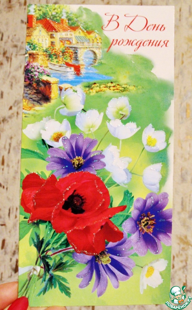 Кстати, муж до сих пор удивлен, что люди, знакомые только виртуально, вот так запросто, от души поздравляют друг друга с праздниками.Одна из открыток пришла из города Арзамас от Светланы специалист с поздравлениями ко Дню рождения и с Новым годом. Очаровательная яркая открытка исписана сердечными поздравлениями и пожеланиями, и великолепными картинками внутри, внутреннюю часть, по понятным причинам, я вам показать не могу.