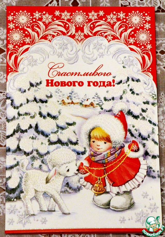 Вторая открытка приехала из города Набережные Челны от поваренка с редким именем Ландыш Convallaria. Сказочная новогодняя открытка с милой девочкой и овечкой привезла мне теплые пожелания, волшебные стихи и поздравления.