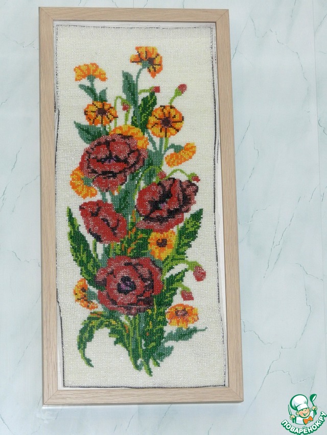 А картина бисером тоже под стеклом? Я вот крестиком вышиваю, тоже много раздарила картин.