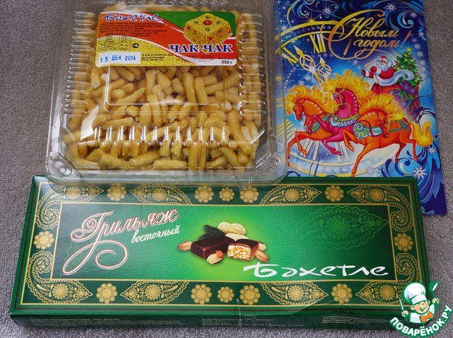 Классные восточный сладости, чак-чак, грильяж и красивая открыточка с самыми милыми и добрыми пожеланиями