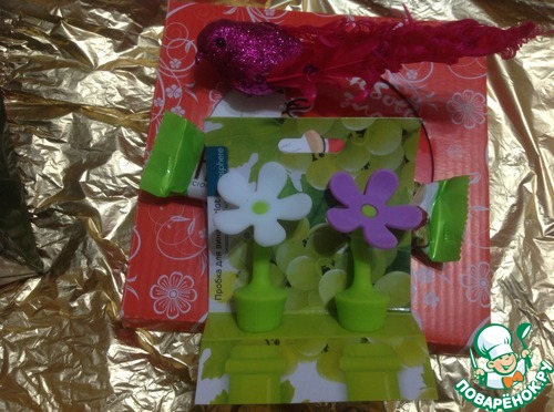 Танюша Marfutak , чудесную новогоднюю птичку, вкусную шоколадку! Классные пробочки для бутылок. Один цветочек уже несет свою службу!!!