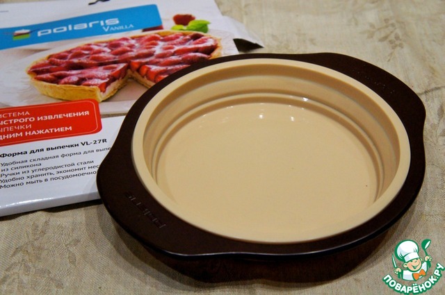 Складная силиконовая форма. Идеальна для выпечки тартов, кишей и других пирогов. Здесь она в сложенном виде. Очень удобно хранить, занимает минимум места.
