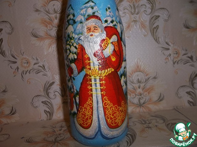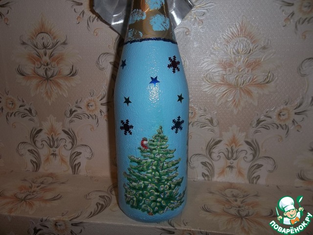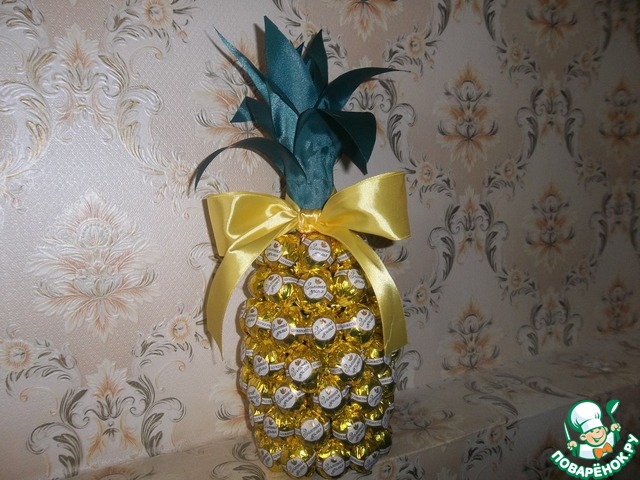 Этот раз, сделала бутылку шампанского в виде ананаса. Получилось очень интересно.