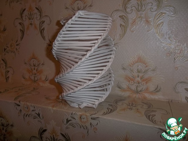 А лучше сплести из белой бумаги. Я сплела вазочку.Получилось вот так.
